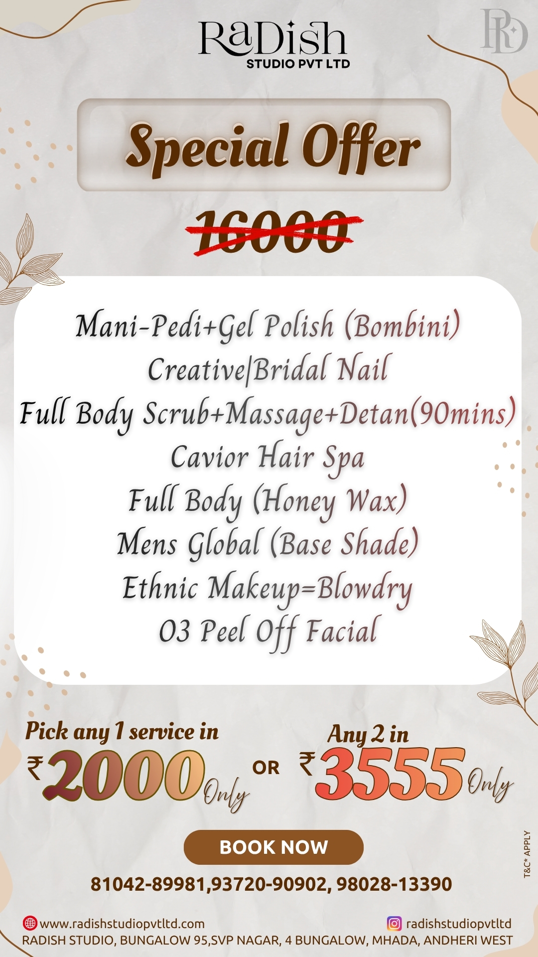 At Radish Beauty Salon, we believe that true beauty begins with self-care and confidence. Nestled in a calming, stylish space, our salon offers a full range of beauty services designed to enhance your natural glow and elevate your everyday look. Whether you're here for a refreshing facial, a flawless haircut, luxurious hair treatments, or bridal styling, our experienced professionals use premium products and the latest techniques to ensure you look and feel your absolute best.